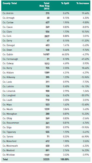 In 2016, new Dublin .ie registrations totalled 14,187, or 44% of all new registrations. This was a slight 4% decrease on 2015. Cork registrations totalled 2,837, or 9%, a 3% increase on 2015; Galway registrations totalled 1,512, or 5%, an increase of just under 1% on 2015.